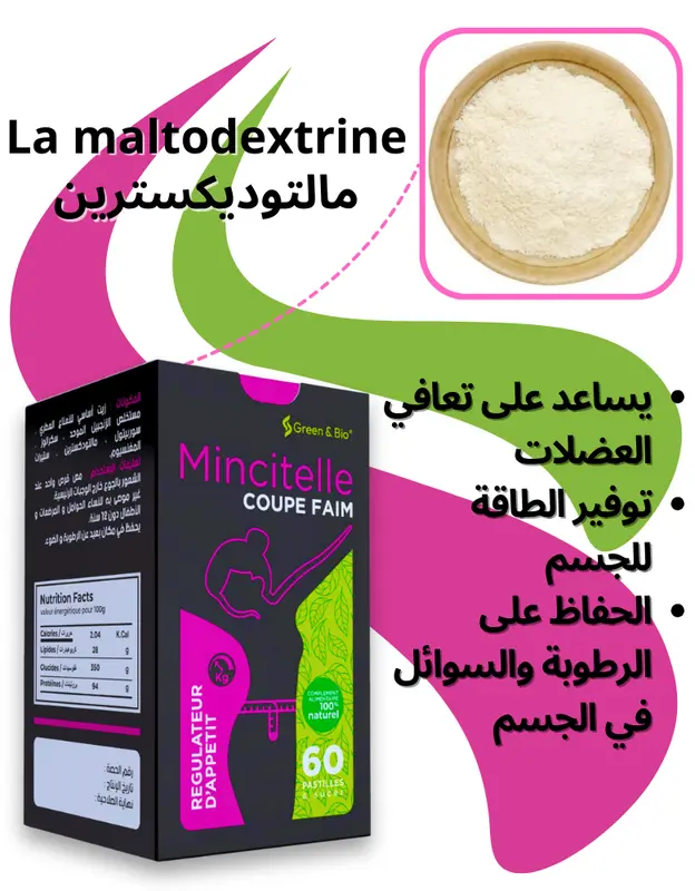 - La maltodextrine sert de complément nutritionnel dont l’objectif unique est d’enrichir la ration alimentaire en glucides donc en énergie facilement utilisable par l’organisme.