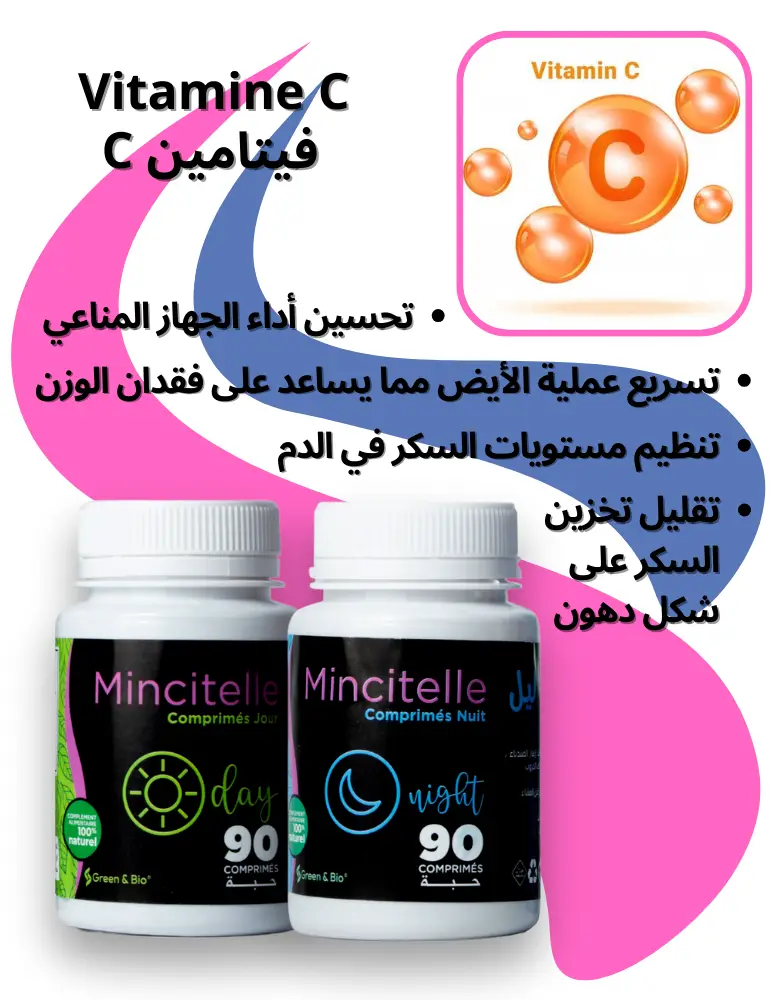 - La vitamine C contribue au bon fonctionnement du système immunitaire et participe aux défenses antioxydantes de l’organisme. En cas de carence le corps envoie un signal de faim qui nous pousse à manger, elle fait partie des aides minceur les plus efficaces, puisqu’elle accélère le métabolisme, stabilise le taux de sucre dans le sang et freine le stockage des sucres sous forme de graisse elle contribue à la production d’une hormone qui chasse la graisse des cellules : la noradrénaline, or, à défaut de vitamines, la graisse stagne et fini par s’ancrer dans les tissus adipeux. Elle est particulièrement utile lors d’un régime pendant lequel les baisses de moral sont chroniques : parce qu’elle facilite l’assimilation du fer et du calcium d’origine végétale., la vitamine C a une action anti-fatigue, qui nous donne envie de bouger et qui nous fait perdre du poids.
