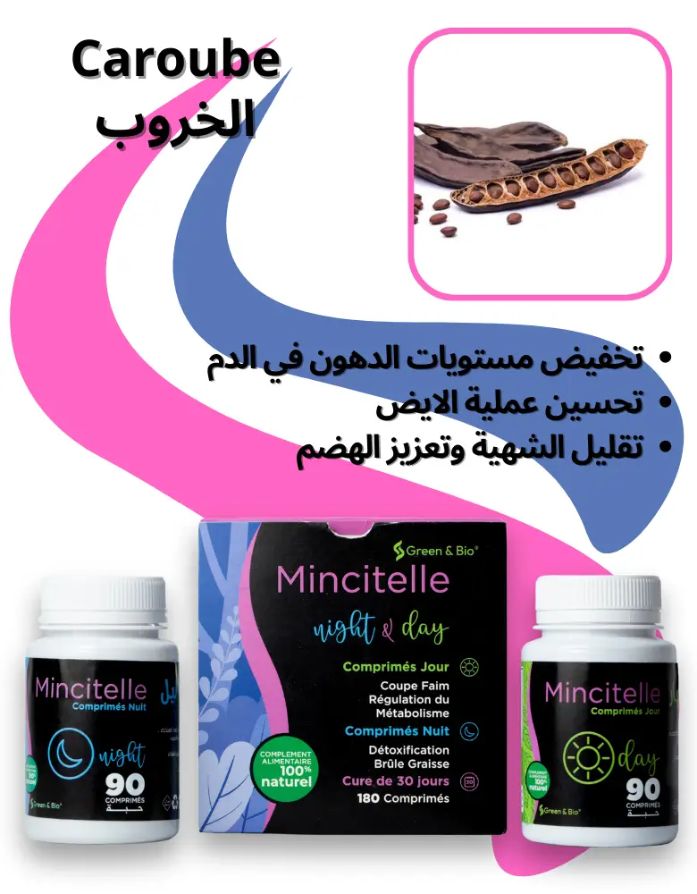 - Le caroube est exploité pour ses qualités nutritionnelles et ses nombreux bienfaits sur la santé, il assure un rôle de régulateur de la fonction intestinale donc il contribue contre la diarrhée et la constipation, il aide au renforcement du système immunitaire et un allié minceur puisque sa teneur en fibre en fait un parfait coupe faim naturel vu que ses fibres prennent une texture de gel une fois dans l’estomac. Cette texture gélatineuse tapisse les parois de l’estomac et réduit la sensation de faim